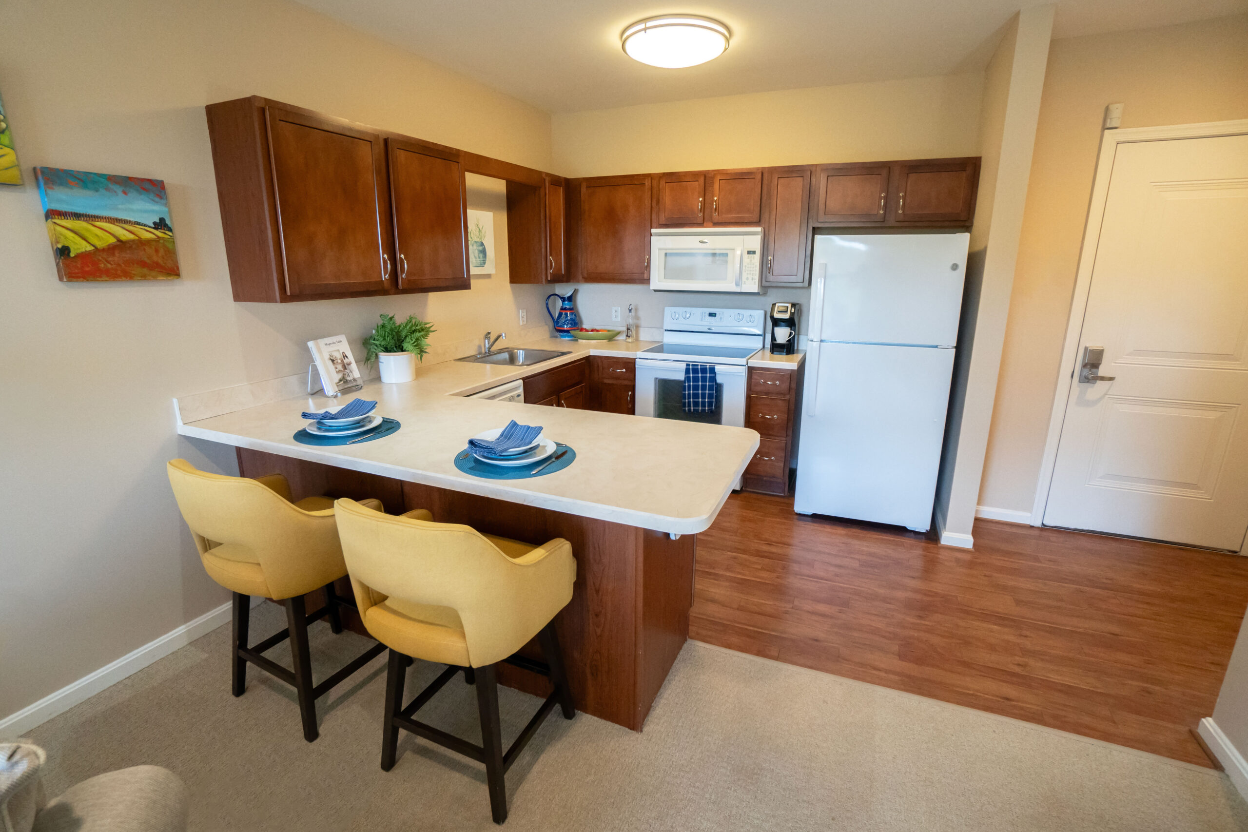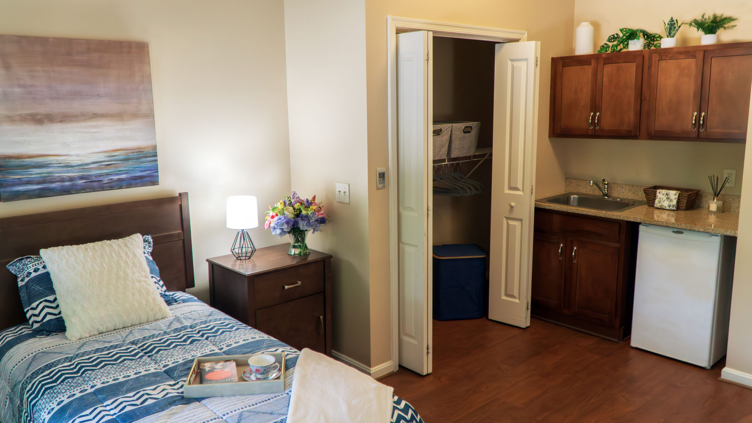 Make yourself at home in one of our Personal Care apartments. Choose from studio, one- or two-bedroom floor plans. No matter which you choose, you’ll enjoy beautiful surroundings and complete comfort, with upscale finishes, high ceilings, and large windows that invite abundant natural light. Our team can also work with you to further personalize your apartment to complement your individual taste and lifestyle.
